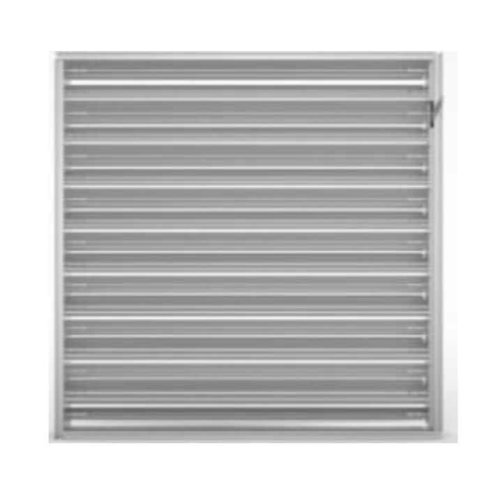 Compuerta de gravedad o barométrica, fabricada en acero con marco en L y aletas de 3″ diseñada para ser accionada por medio del empuje mismo del aire, levantando las aletas y permitiendo el paso de aire en un solo sentido. Modelo GLA